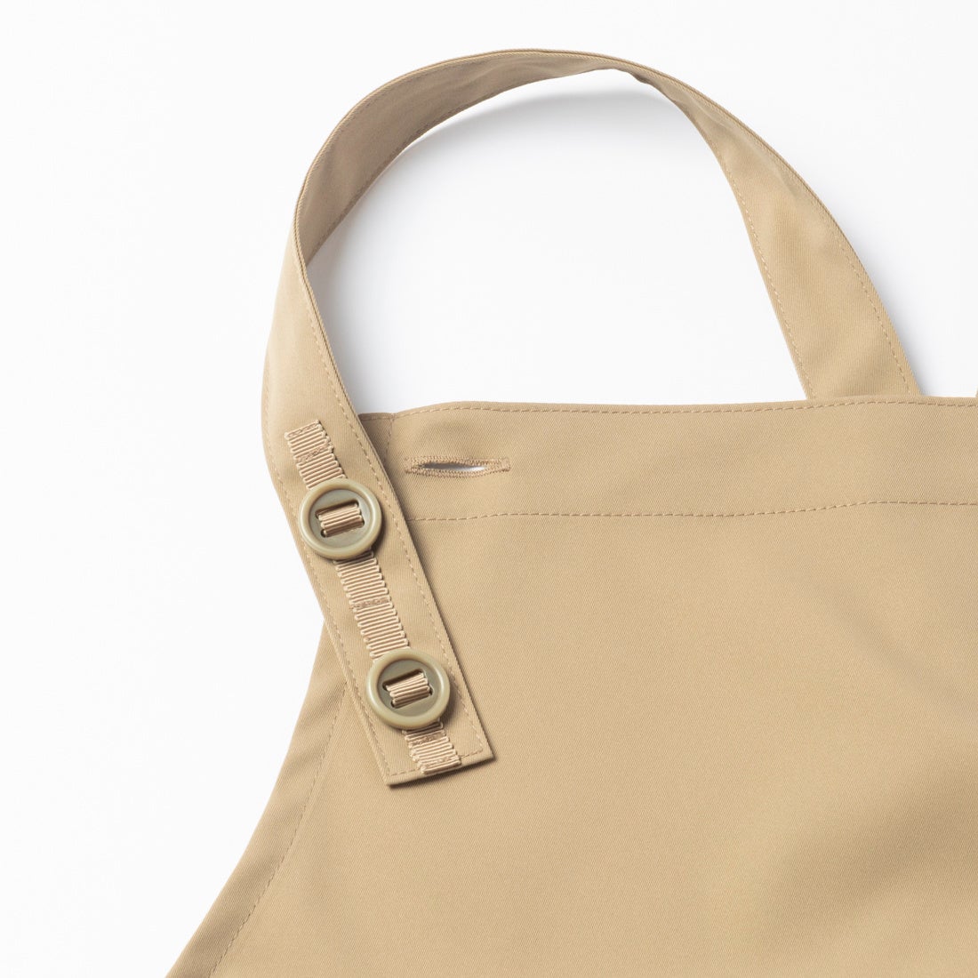 特徴:ストレッチ性、速乾、撥水、水洗い可、イージーケアの高機能性を誇る自社オリジナル素材「ultimex/アルティメックス」を使用。ユニセックスでご着用可能。身長・体形に合わせて肩と身幅で最大8段階に調整可能。サイズ調整ボタンにはミリタリーが起源のパラシュートボタンを採用。ボタン穴に糸ではなく、テープ状の太い紐を通すことで耐久性をアップしました。スマートフォンやタオル、小物類が収納できるポケットはかかんだ際の落下物を防ぐためのジップ付き。お仕事時にも使用できるよう胸元には名札用ループ、ポケットにはペン差しを付与。軽量で汚れが付きにくく、自宅で簡単に洗濯できるため清潔に着用できます。